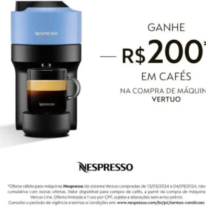 Cafeteira Espresso Nespresso Vertuo Pop – Azul | 1300W | 4 Tamanhos de Xícara | 220V Eleve sua experiência com café ao toque de um botão com a Cafeteira Espresso Nespresso Vertuo Pop. Compacta, potente e elegante na cor azul, ela entrega o blend perfeito com tecnologia Centrifusion™, que gira a cápsula até 7.000 vezes…