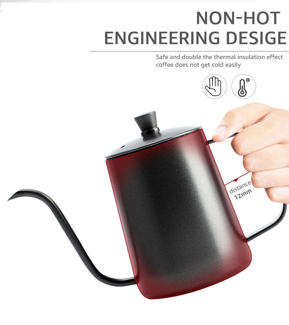 Seu bico fino estilo pescoço de ganso proporciona um fluxo suave e direcionado, enquanto a alça ergonômica garante segurança e conforto durante o uso. O revestimento antiaderente facilita a limpeza e evita acúmulo de resíduos, permitindo uma rotina prática e higiênica.