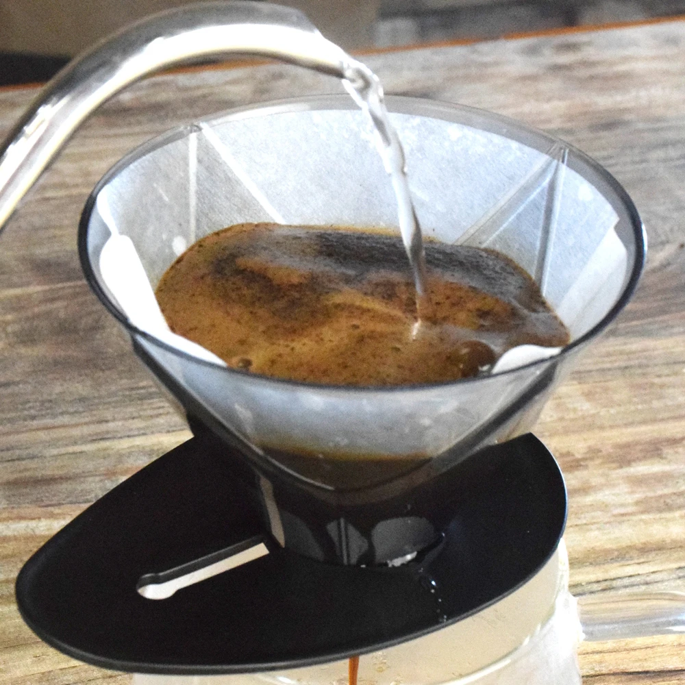 Seu diferencial está no formato de cesta com ranhuras internas em estrela cruzada, que evita que o papel filtro grude nas paredes do copo, facilitando a extração uniforme da bebida e realçando os sabores e aromas do café. O encaixe perfeito do papel de filtro após ser molhado proporciona uma passagem de água suave, sem obstruções, ideal para cafés limpos e equilibrados.