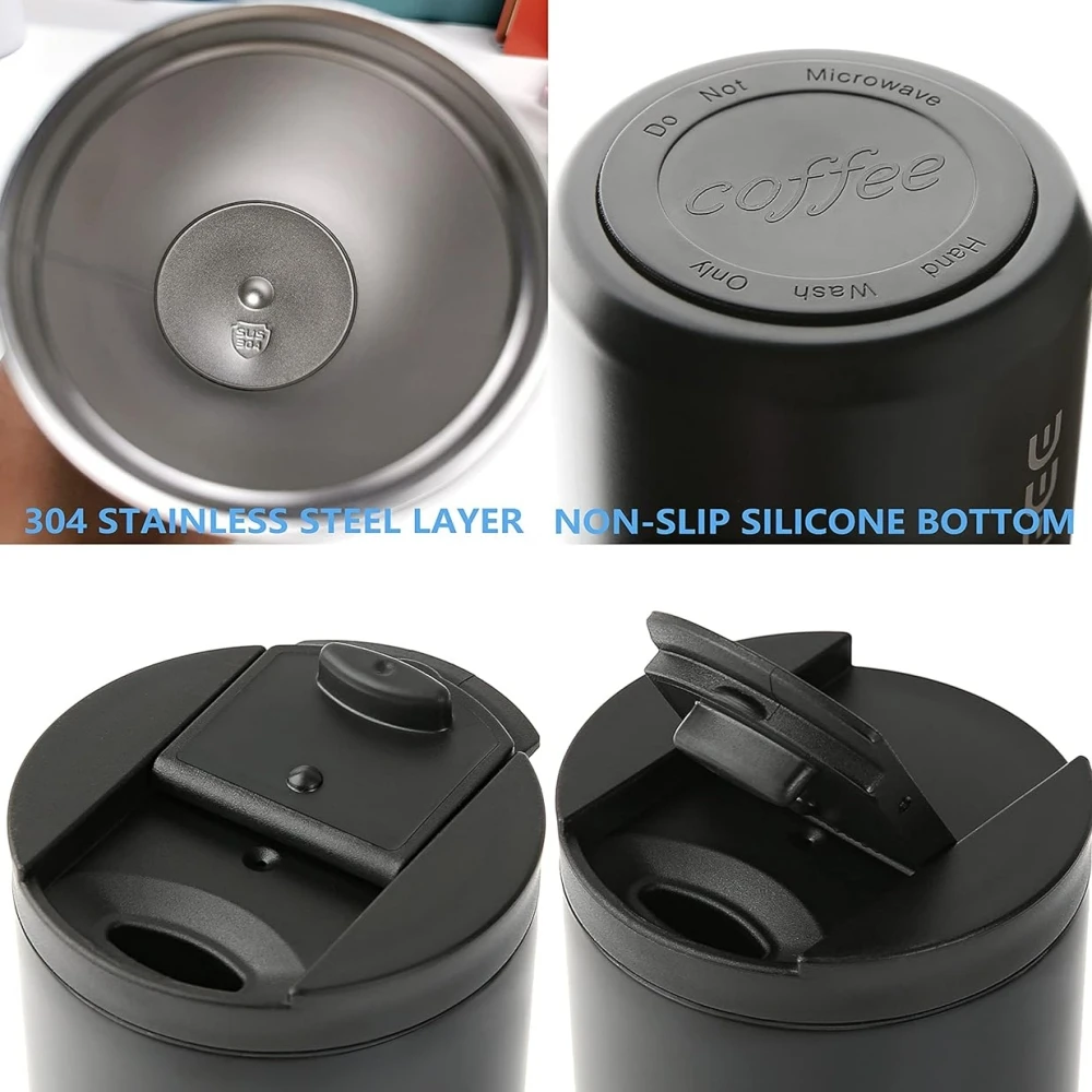 Desfrute de sua bebida favorita com conforto e segurança usando a caneca térmica de café 400ml em aço inoxidável, feita com material 304 de alta qualidade, inodoro, resistente e totalmente à prova de vazamentos.