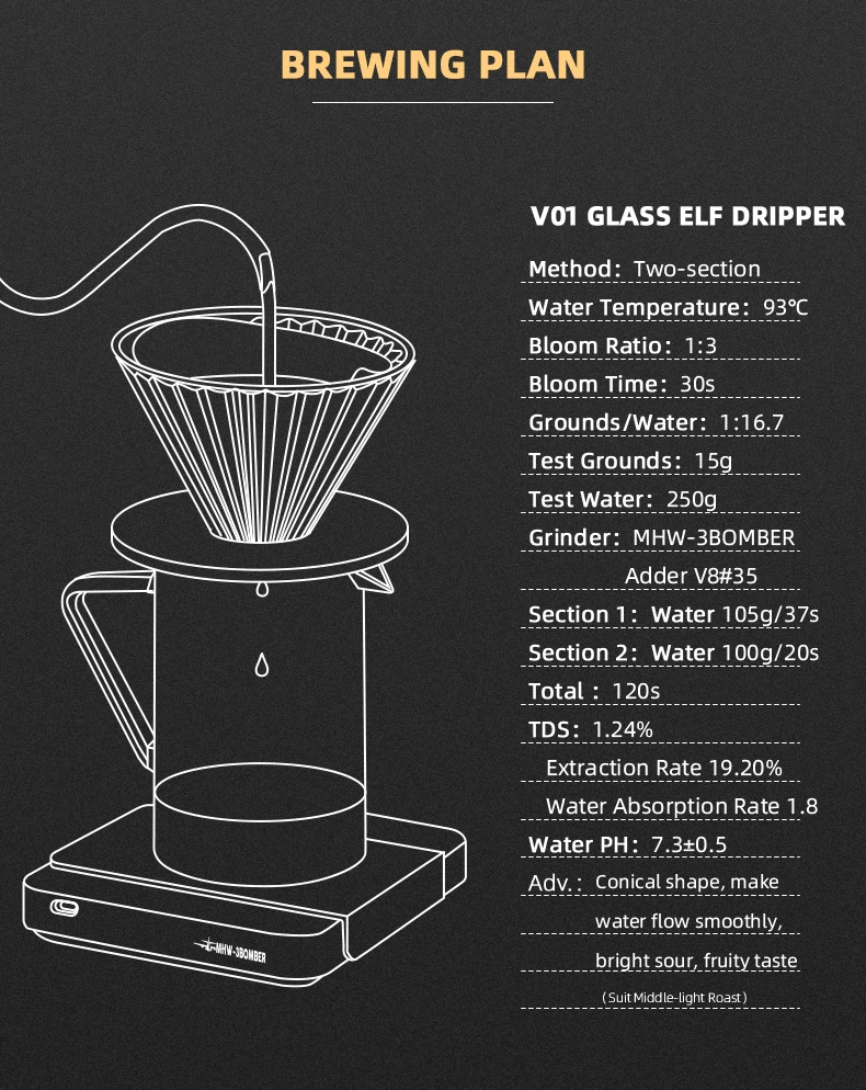 Eleve sua experiência de preparo com o Gotejador de Café MHW-3BOMBER, uma peça refinada feita em vidro de alta precisão com formato cônico que garante um visual elegante e uma extração superior.