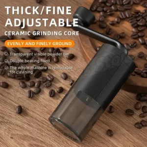 Seu funcionamento é simples: basta pressionar um botão para iniciar a moagem. Com acabamento moderno e estrutura em ABS de alta qualidade, o moedor oferece um equilíbrio perfeito entre estética e funcionalidade. Ideal para iniciantes e baristas apaixonados.