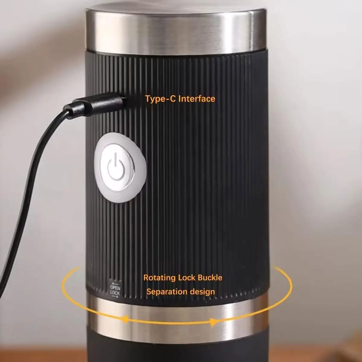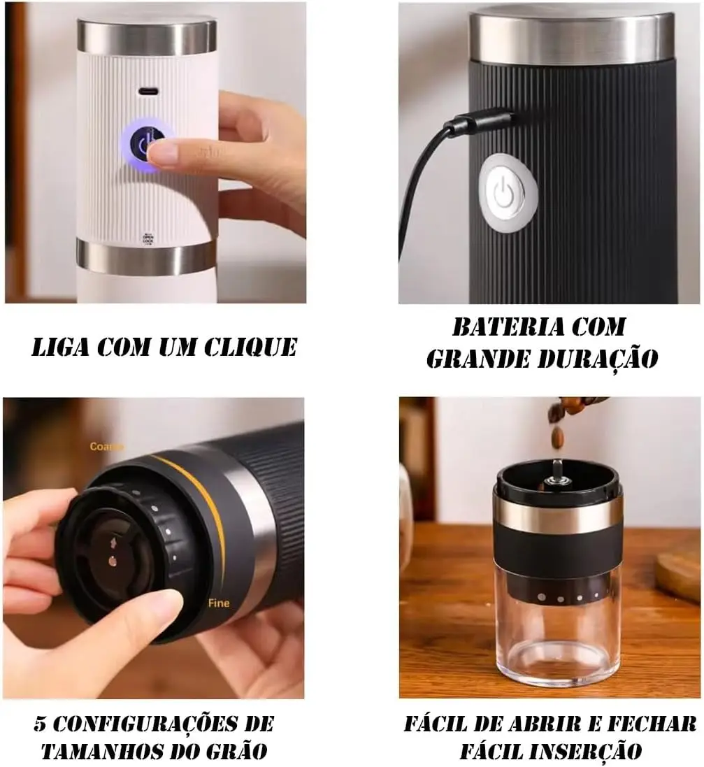 Prepare seu café com praticidade e frescor com o Moedor de Café Automático Portátil MARKELK, a escolha ideal para quem valoriza sabor, tecnologia e conveniência. Compacto, leve e totalmente sem fio, este moedor possui bateria recarregável via USB e autonomia ideal para o uso diário ou em viagens. Seu design portátil permite que você leve seu ritual do café para qualquer lugar: escritório, acampamento, trilhas ou apenas para curtir um momento especial em casa.
