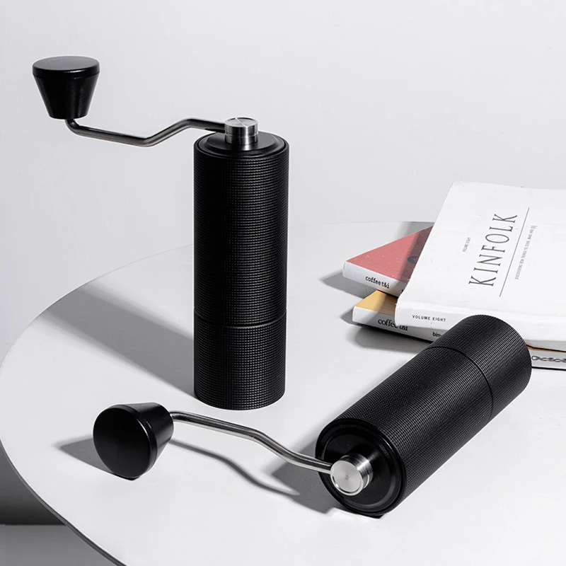 Timemore C2S atualizado com corpo em metal. Portátil e preciso, é ideal para moer café em qualquer lugar, com consistência e estilo.
