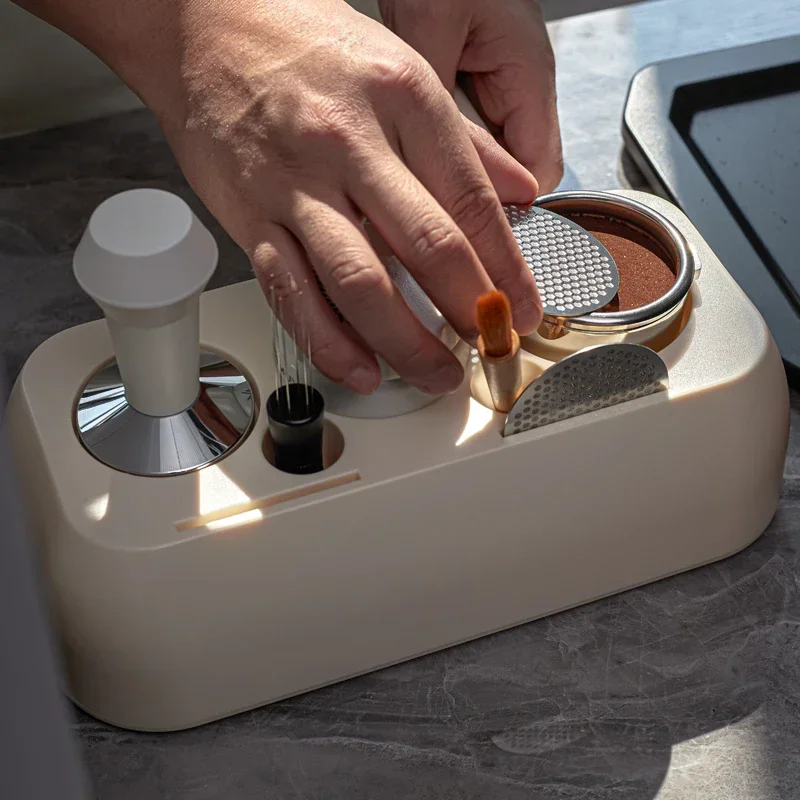 O suporte prensa café da Dawndesslo é a estação ideal para baristas exigentes e entusiastas do café espresso. Desenvolvido para acomodar porta-filtros de 51mm a 58mm, ele oferece compatibilidade com diversos modelos de máquinas e garante estabilidade e organização no preparo.